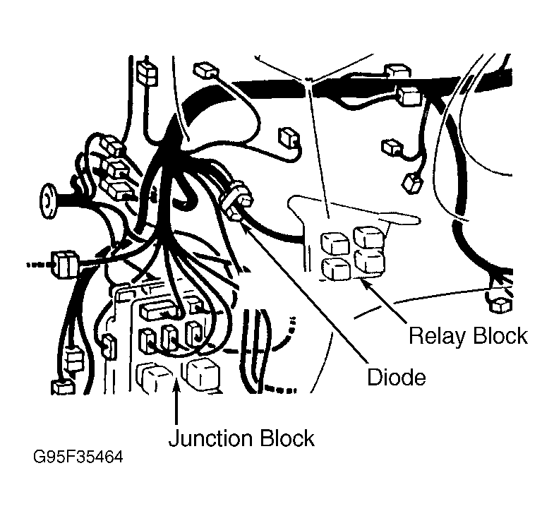 Disconnect diode harness connector. See Fig 1 . Using ohmmeter, check for continuity in only one direction of current flow. Replace as needed.