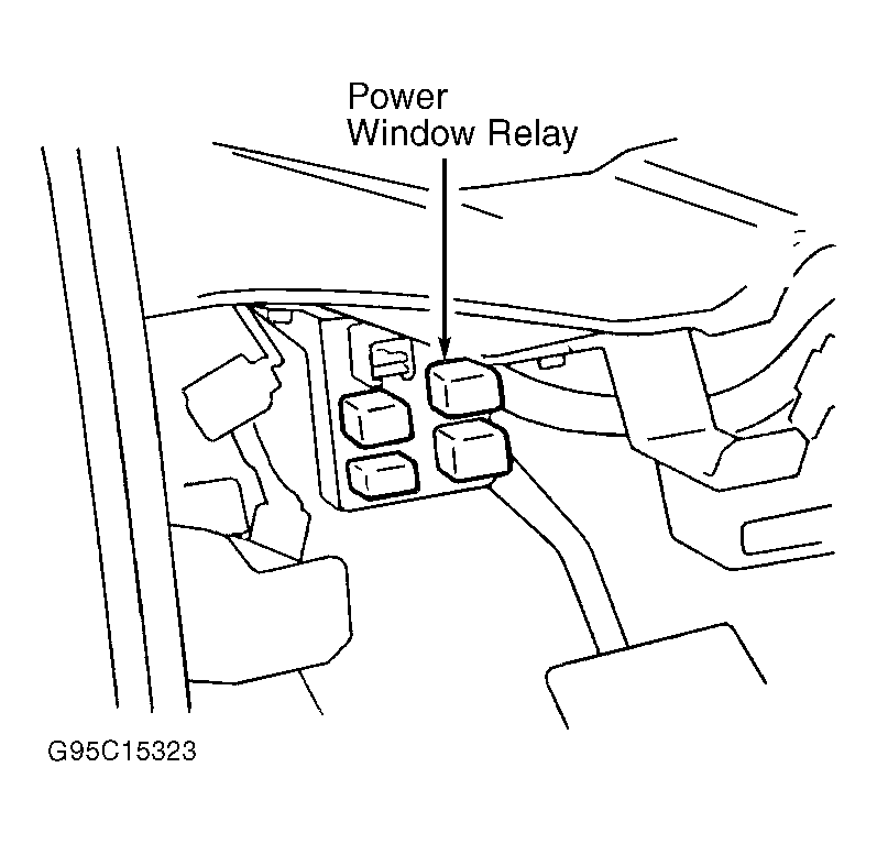 - Remove power window relay from fuse/relay block located under left side of instrument panel. See Figure