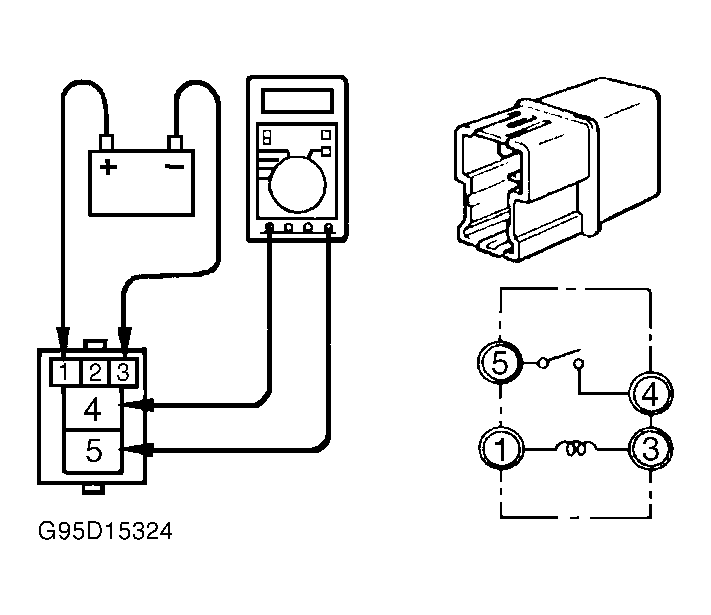 . Continuity should exist between relay terminals No. 4 and 5. If continuity does not exist, replace relay.