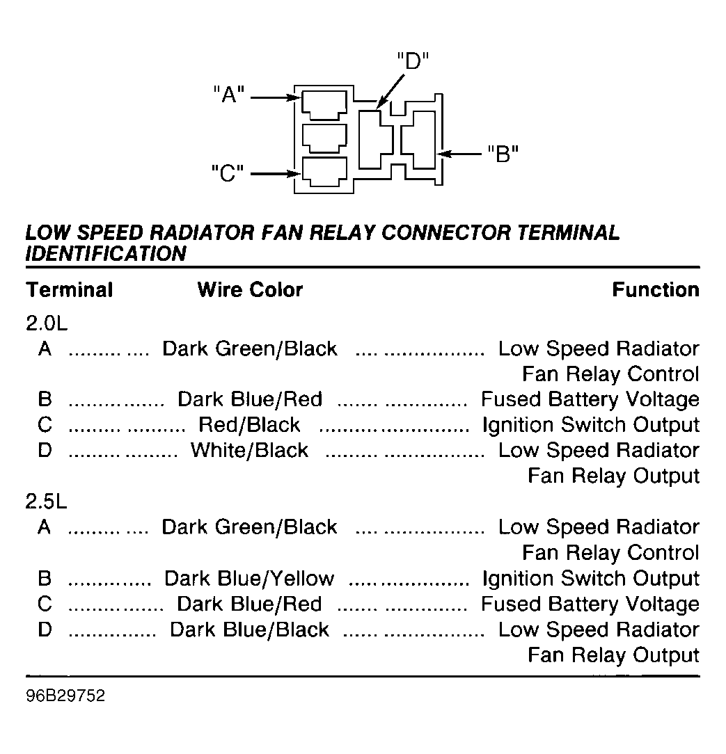 | Low Speed Radiator Fan Relay Connector | ||