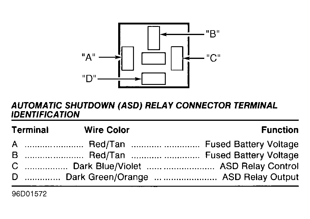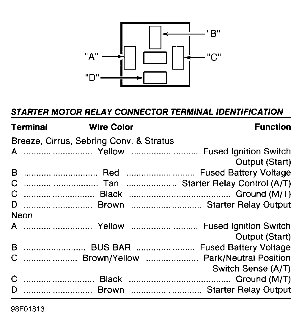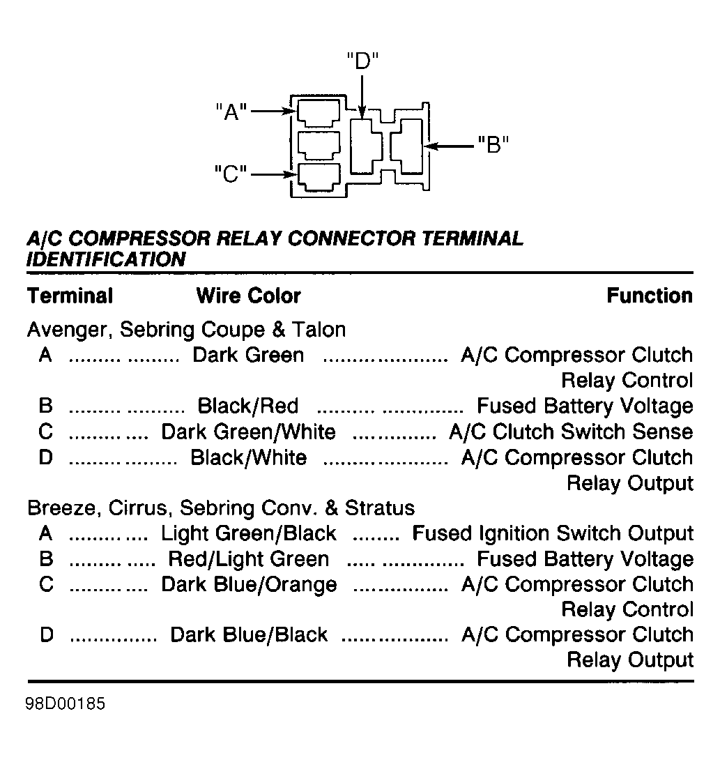 Fig 1: Identifying A/C Compressor Relay Connector (Avenger, Breeze, Cirrus, Sebring Conv., Sebring Coupe, Stratus & Talon)