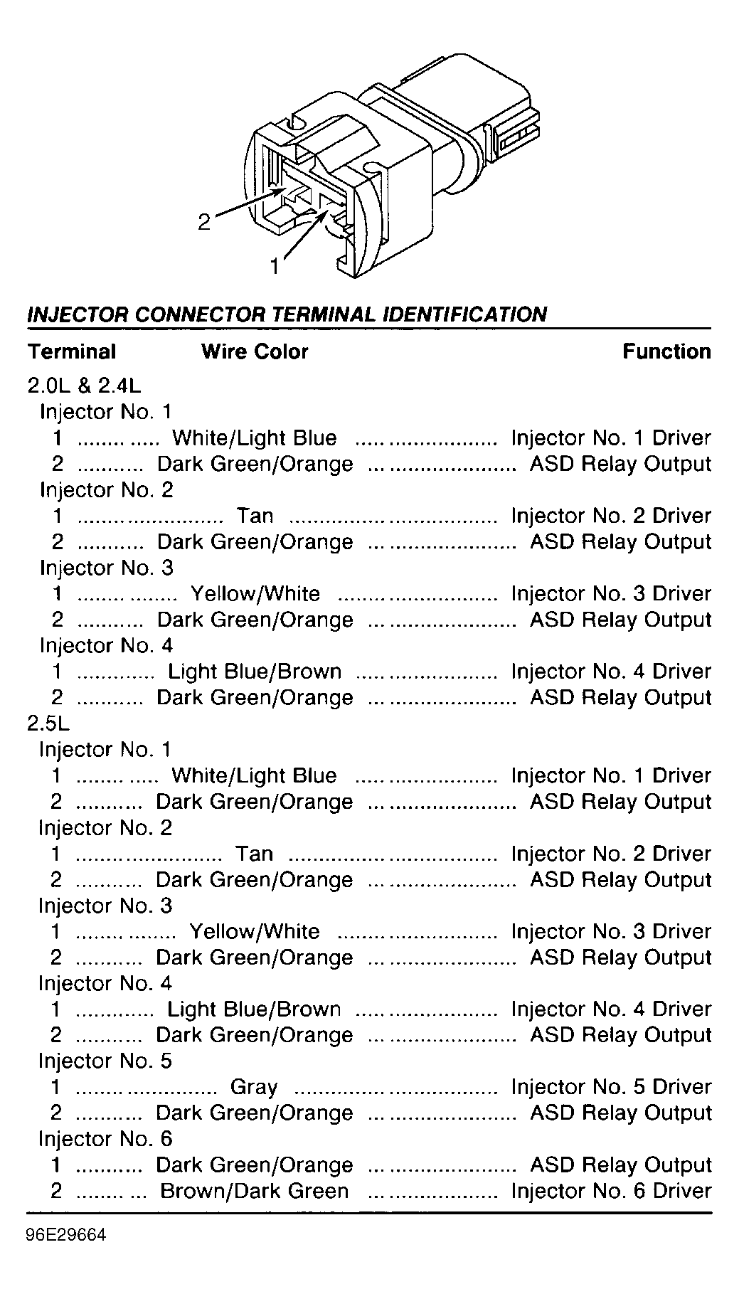 | Injector 4-Pin Connector (PCM Side) | ||