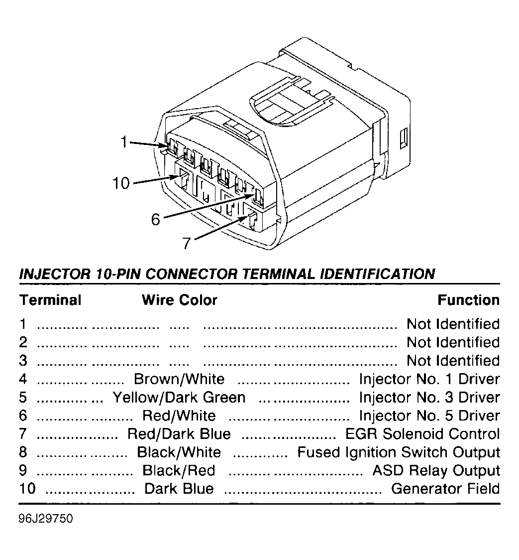 | Injector 10-Pin Connector (PCM Side) | ||
