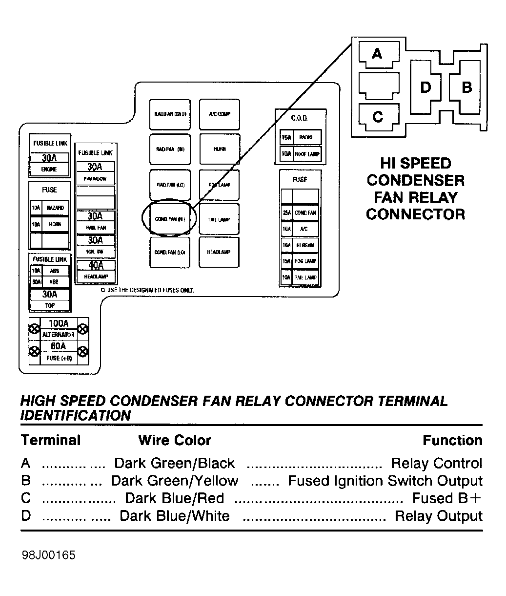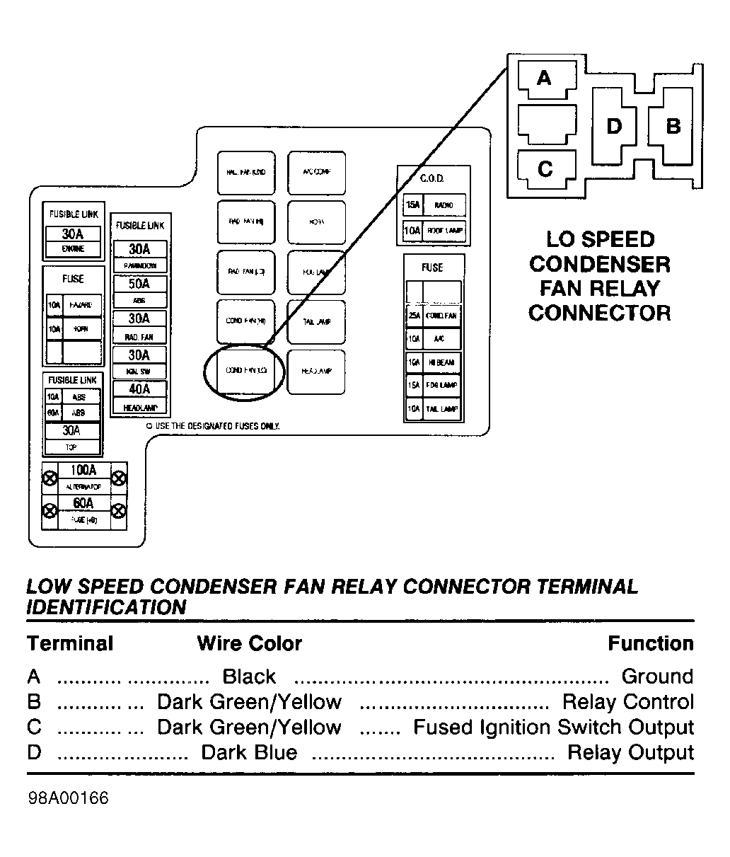 | Low Speed Condenser Fan Relay Connector | ||