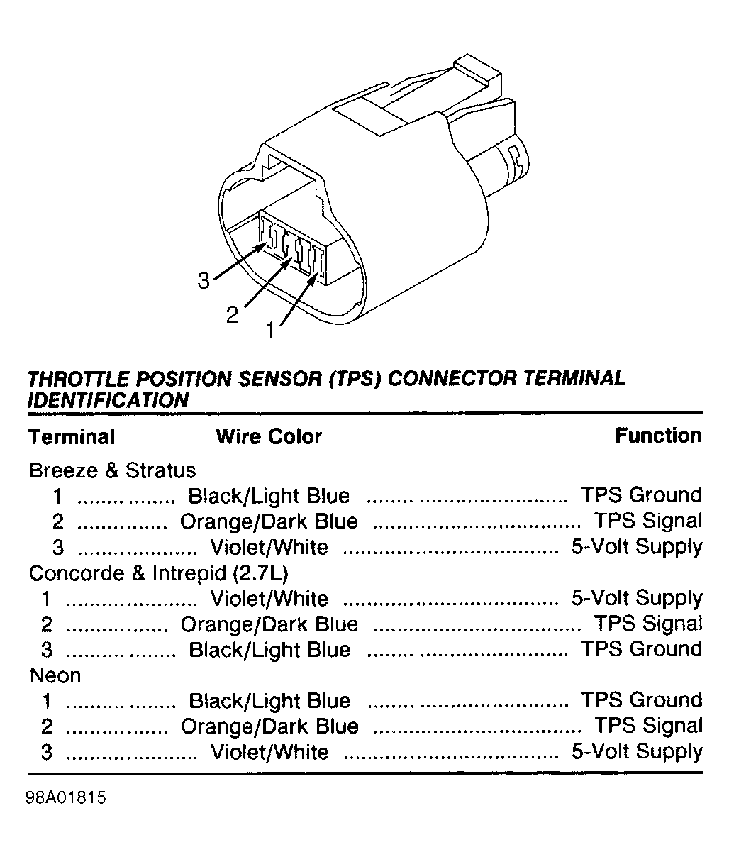 Fig 72: Identifying Throttle Position Sensor Connector (Breeze 2.4L, Cirrus 2.5L, Sebring Conv., & Stratus 2.4L & 2.5L)