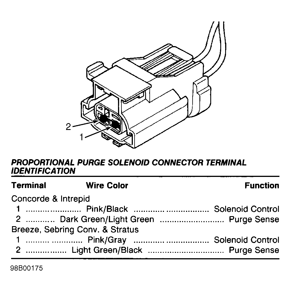 Fig 61: Identifying Proportional Purge Solenoid Connector (Breeze, Sebring Convertible & Stratus 2.0L & 2.4L)