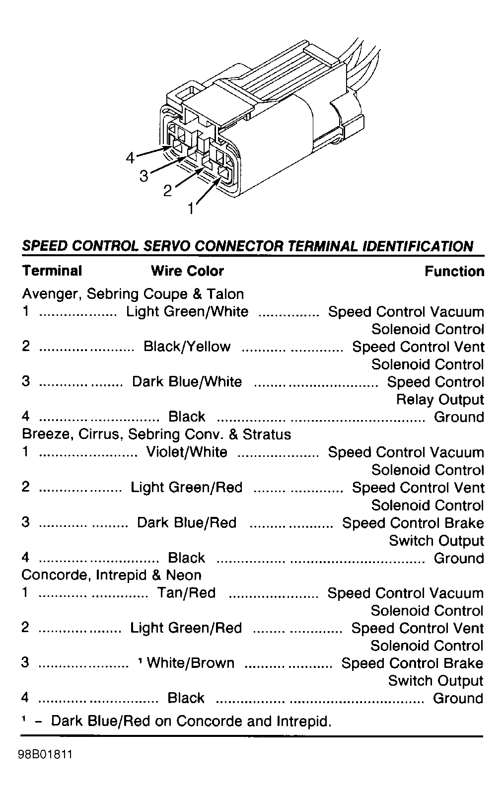 Fig 65: Identifying Speed Control Servo Connector (Avenger, Breeze, Cirrus, Neon, Sebring Conv., Sebring Coupe, Stratus & Talon)