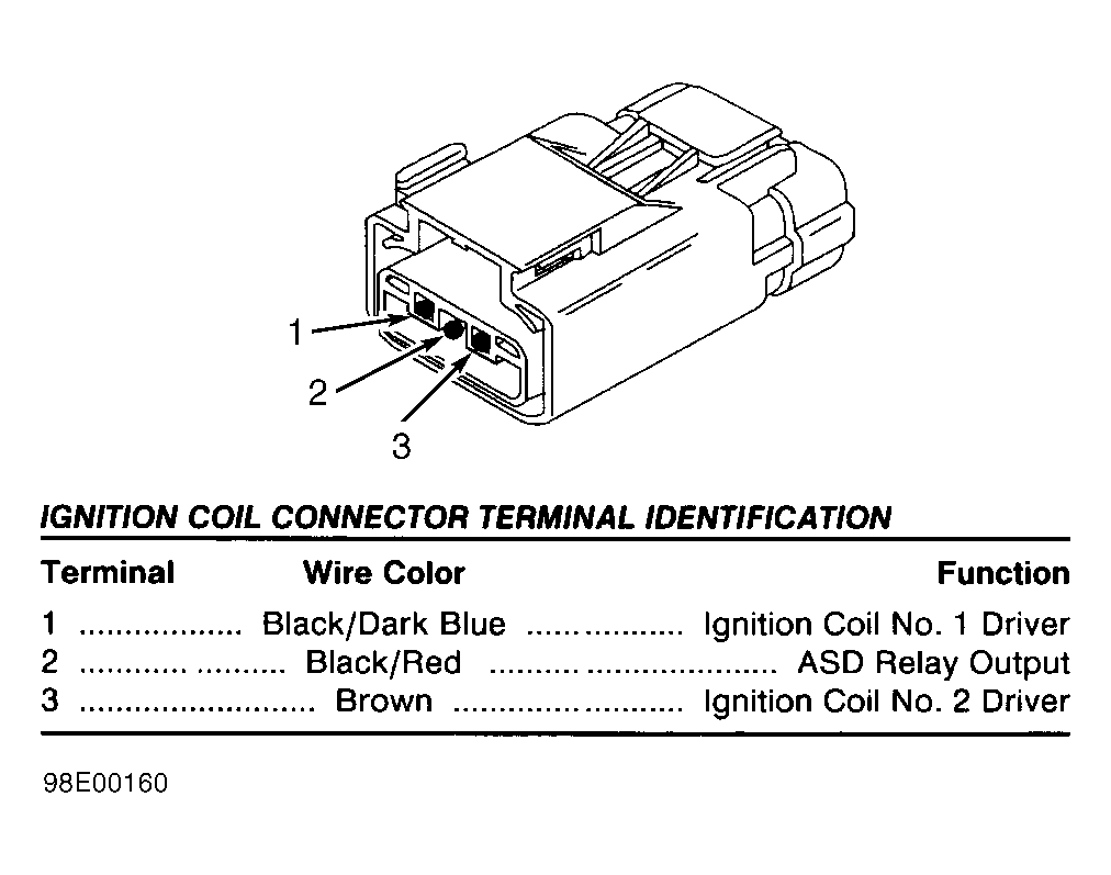 Fig 38: Identifying Ignition Coil Connector (Breeze, Cirrus, Sebring Convertible, Neon & Stratus 2.0L & 2.4L)