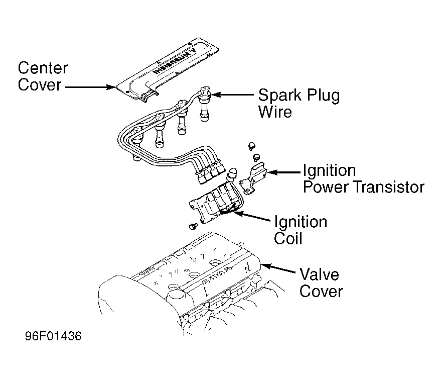 - Disconnect ignition coil connector. Ignition coil is located on top of engine, between valve covers and contains a 3-pin connector. See Fig 1 .