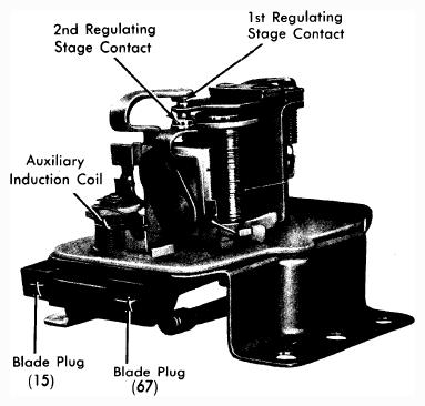 - SERVICE PRECAUTIONS - When replacing regulator, and during bench testing, be careful not to exchange the wire to plug "15" with wire to plug "67" (see Fig 1). Current passing through contacts would be high enough to melt second stage contacts before fuse in lead "15" would blow.
