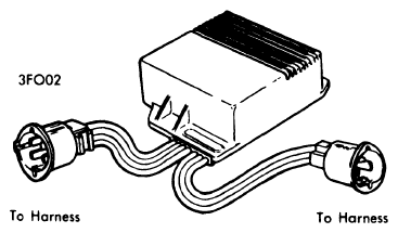 The module contains seven color coded wires (see Fig 1). The module receives power from ignition switch through red wire while engine is running and through white wire while engine is cranking. The orange and purple wires transmit signals from distributor while green wire receives primary ignition current from coil which is then transmitted to ground at distributor through black wire. System protection is provided through blue wire, which is a fusible link. The electronic module cannot be repaired.