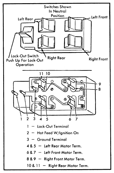 - Push any one of all four switches rearward and hold in that position. All even numbered pins of the switch pushed rearward should have continuity with pin two. If any one switch does not test correctly, as previously outlined, switch must be replaced.