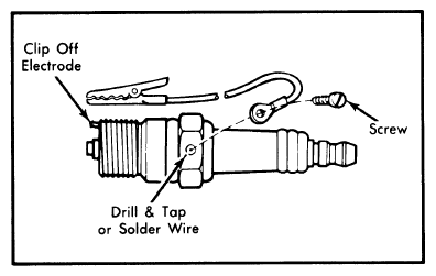 NOTE: To modify spark plug, cut off side electrode and solder or tap and screw a ground lead to spark plug case. Ground wire and insert plug terminal into coil wire.