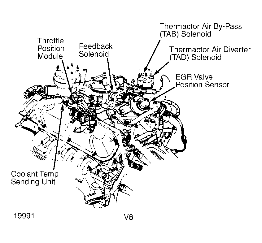 | Throttle Position Module | On left front side of carburetor. See Figure. |