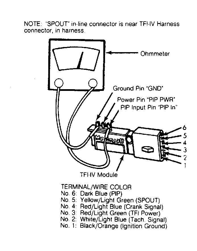 5. Measure resistance between TFI-IV module terminals. See Fig 1. Refer to the TFI-IV MODULE RESISTANCE VALUES table.