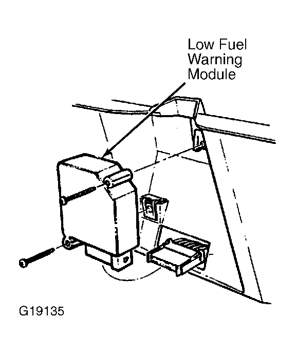 | Low Fuel Warning Module | Behind upper right side of dash, above glove box. See Figure. |