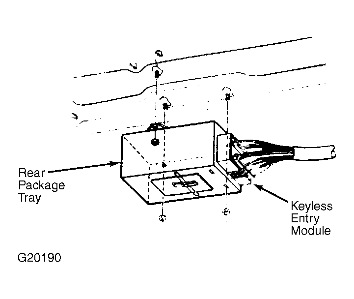 | Keyless Entry Module | Mounted on package tray, behind rear seat. See Figure. |