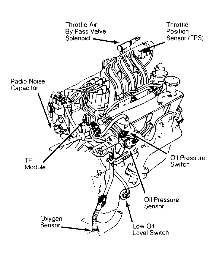 | Electronic Control Assembly (ECA) | Under left side of dash (connector accessed from engine bay). See Figure . |