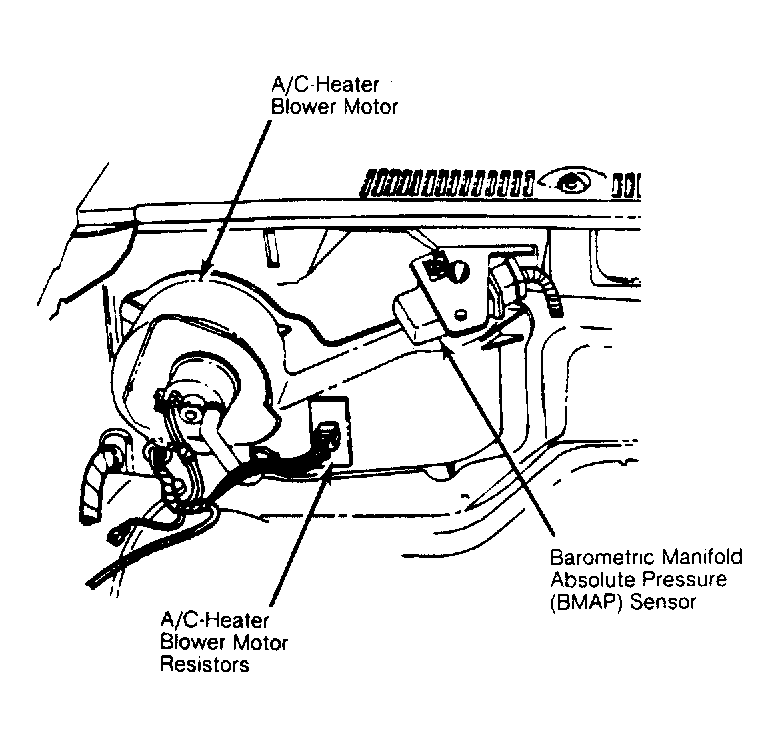 | A/C-Heater Blower Motor Resistors | On A/C-heater housing, near blower motor. See Figure . | |