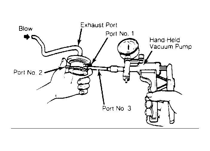 - With a hand-held vacuum pump, apply 7 in. Hg to port No. 3 of modulator. Vacuum should hold. Release pressure from exhaust fitting hose to open diaphragm bleed. Vacuum on gauge should drop. If valve does not perform as stated, replace modulator valve.