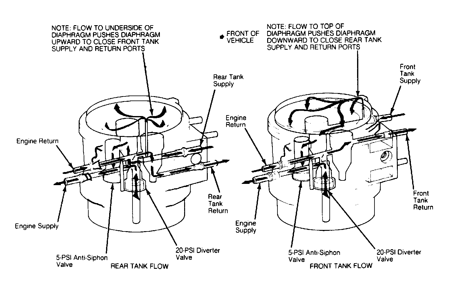 - Block engine side supply port. Apply regulated air pressure to one corresponding supply and return port on tank side. Air pressure should exhaust on engine side return port.