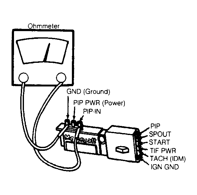 Remove distributor. Remove TFI module from distributor. Measure resistance between TFI-IV module terminals with ohmmeter. See Fig 1 and TFI-IV MODULE RESISTANCE table. If resistance is NOT as specified, replace TFI-IV module.