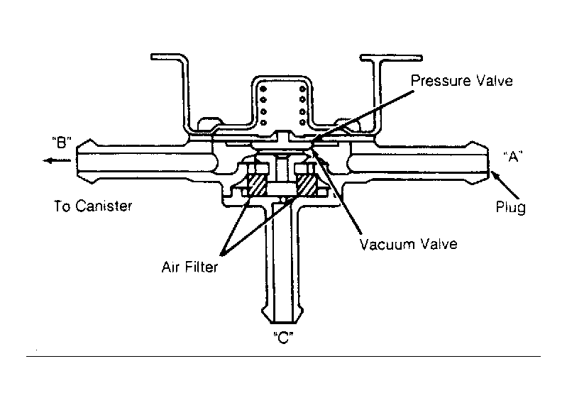 Plug port "A". Blow air into port "B" and verify that air exits at port "C". With port "A" blocked, apply vacuum to port "B" and verify that no vacuum is held. See Fig 1 .