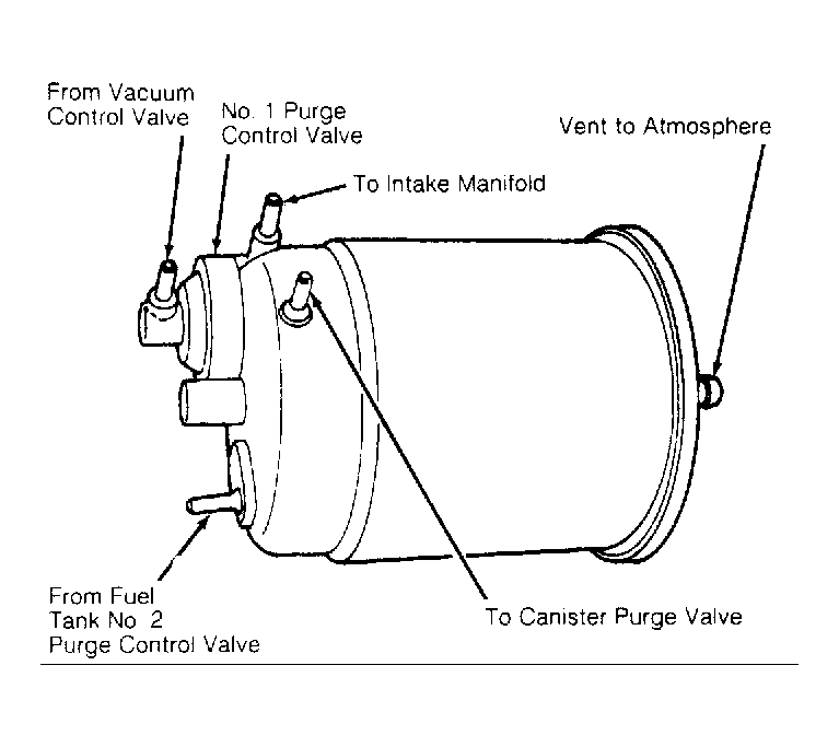 Disconnect hose from No. 2 purge control valve. See Figure . Blow on No. 2 purge control valve and ensure air flows through canister. Replace No. 2 purge control valve and canister assembly if necessary.