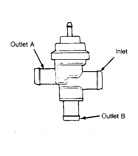 2. Using a direct vacuum line from manifold vacuum source, connect line to vacuum nipple. Airflow should be detected at valve outlet "A" and little or no air at valve outlet "B". If valve fails any test, replace valve. Reconnect all lines.