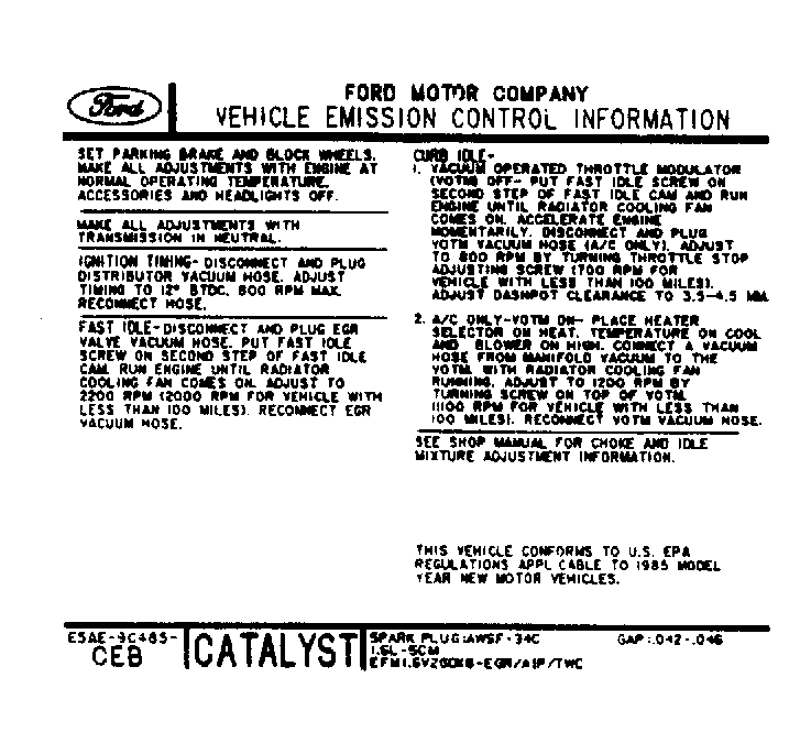 To identify engine calibration number, locate engine code label on valve cover at front of engine. See Fig 1. Calibration codes usually begin with a number indicating current model year. For example, calibrations for 1989 usually begin with "9". Each vehicle is also equipped with an emission control data decal which applies to that vehicle and engine. See Fig 2. These decals are usually located on underside of hood or other visible engine compartment location.