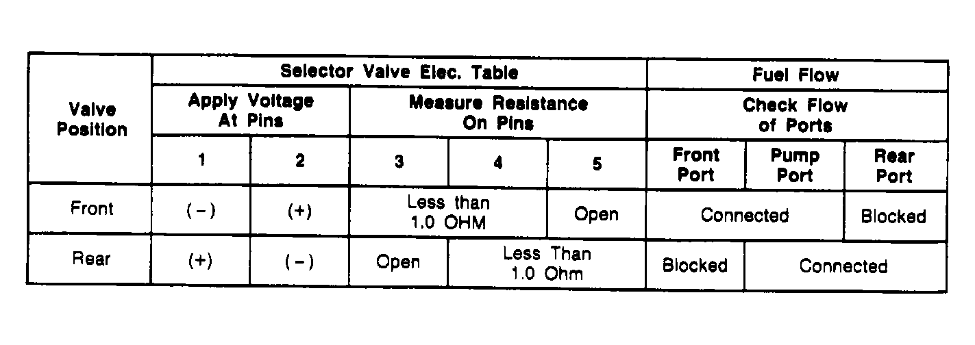 Home >> Ford >> 1990 >> Bronco II 4WD, Standard, M5OD-R1 >> Repair and Diagnosis >> Engine Performance >> System >> Engine Controls - System/Component Tests >> Fuel System Checks >> Fuel Selector Valve