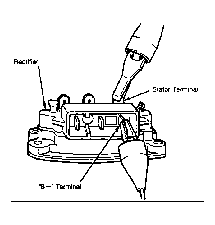 - Reading should be approximately 7 ohms in one direction and no reading with leads reversed. If readings are not correct, replace rectifier.