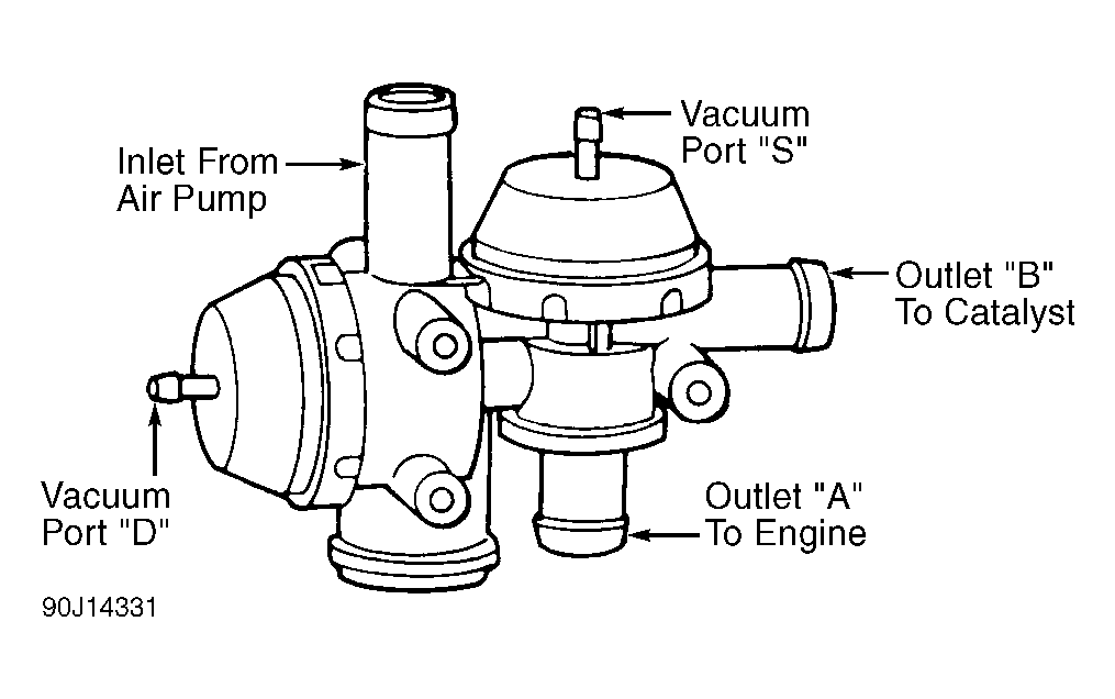 Home >> Ford >> 1990 >> Bronco II RWD, Standard, M5OD-R1 >> Repair and Diagnosis >> Engine Performance >> System >> Engine Controls - System/Component Tests >> Air Injection Systems >> Combination Air By-Pass/Air Control Valve