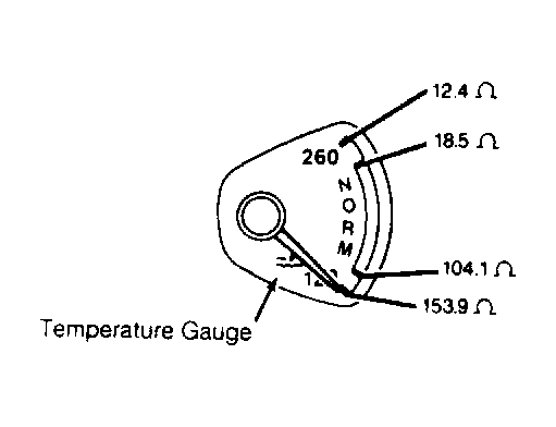 - If reading is within allowable range, proceed to TEMPERATURE SENSOR CHECK . If reading is not within allowable range, replace temperature gauge.