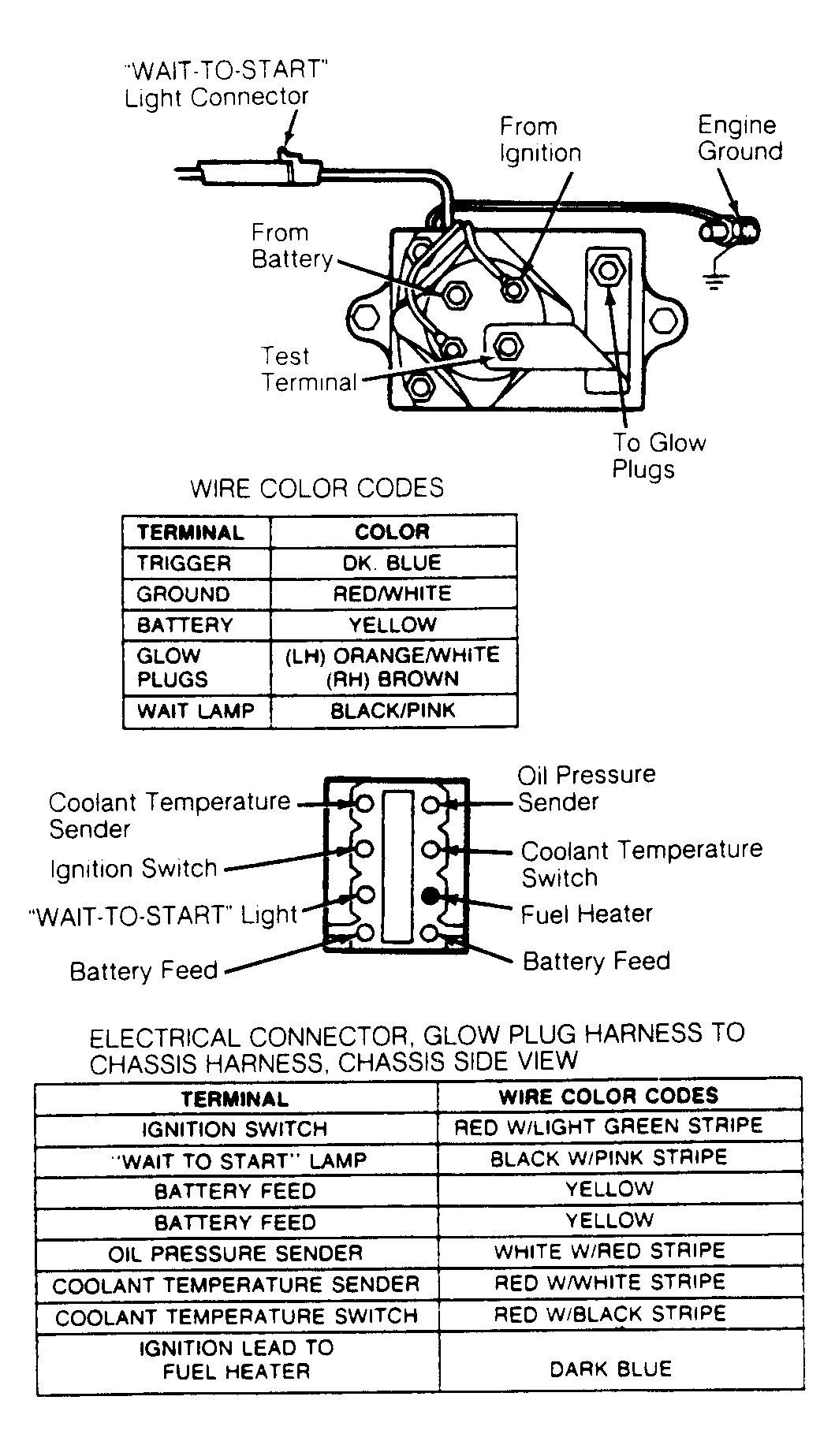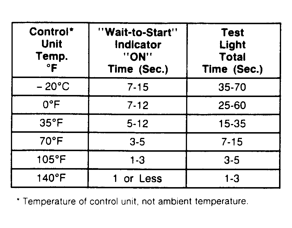 NOTE: The "WAIT-TO-START" indicator and/or test light may not illuminate if engine temperature is at or near operating temperature.