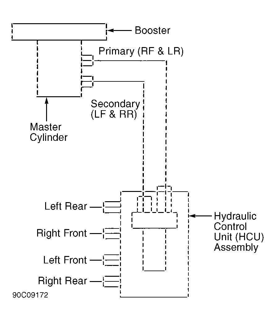 The ECU receives and processes a wheel speed signal from each wheel sensor. When wheel lock-up is about to occur, the ECU activates solenoid valves to modulate hydraulic pressure to each wheel. A pump/motor assembly provides hydraulic pressure to the system. The ABS incorporates self-diagnostic capabilities. See Fig 1 . See DIAGNOSIS .
