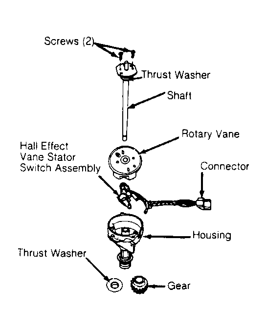 - On all models except 3.8L, install octane rod through distributor base hole. Place end of rod onto same post as original stator. Install and tighten octane rod screw. On 3.8L models, ensure thrust washers are positioned in proper locations. See Fig 1