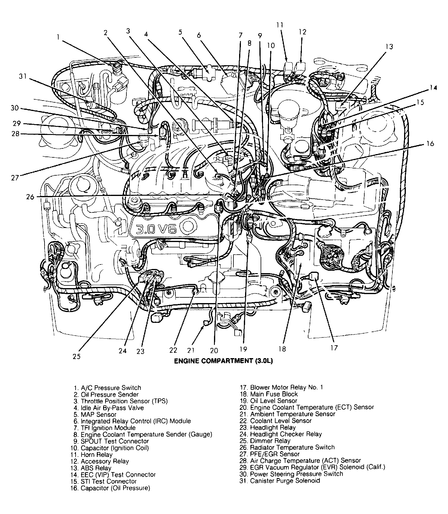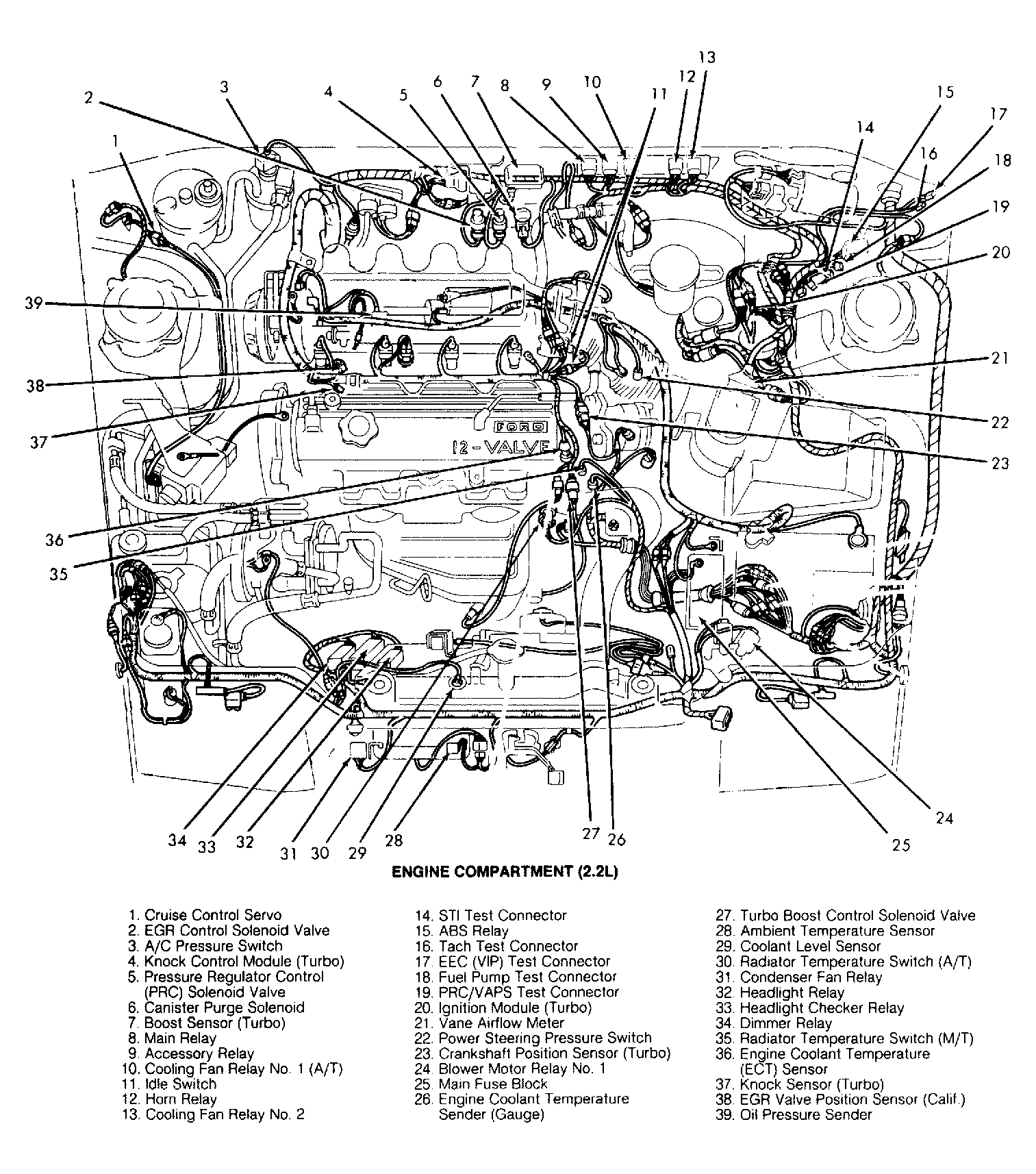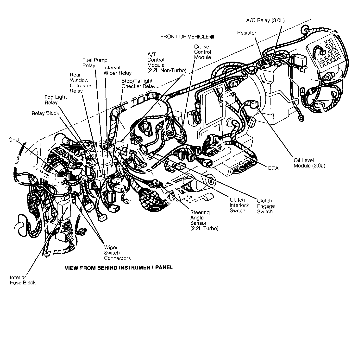 2.2L Turbo & 3.0L Behind instrument panel, to left of steering column.