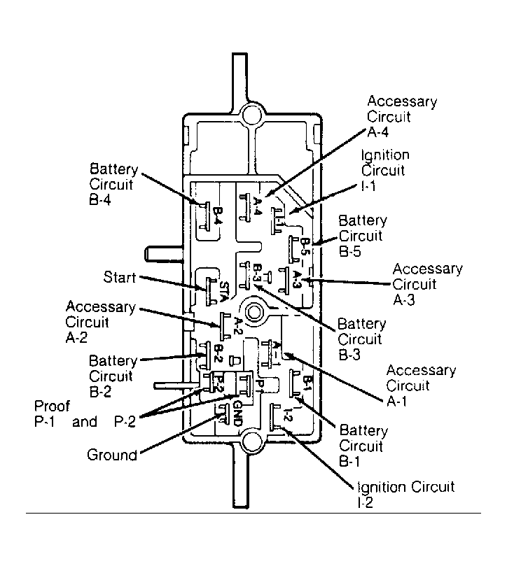 6. With ignition switch in START position, continuity should exist between terminals I-1 and B-5, I-2 and B-1, STA and B-4, P-1 and GND, and P-2 and GND.