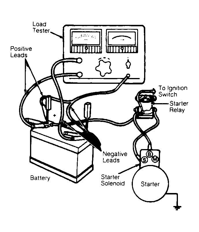 - Ensure transmission is not in gear. Connect remote control starter switch between terminal "S" and positive battery terminal. Crank engine and observe voltmeter reading. Stop cranking engine, and adjust carbon pile rheostat until voltmeter indicates same reading as obtained while cranking engine.