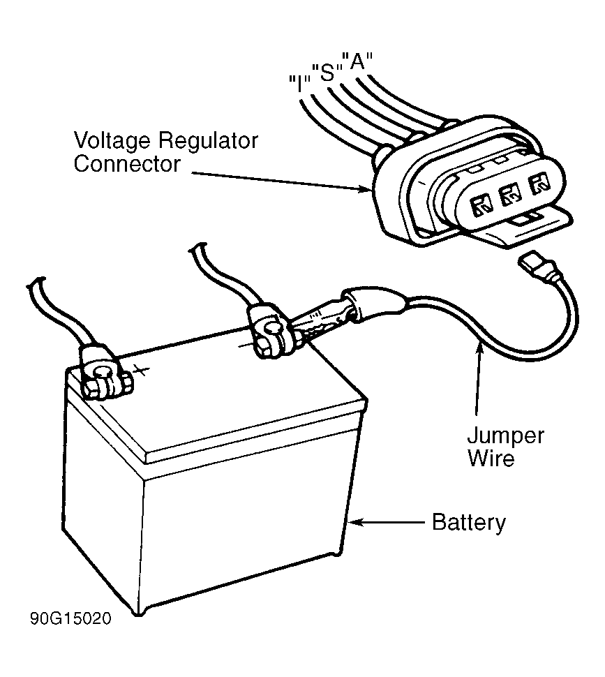 - If indicator light still does not come on, disconnect wiring connector from regulator. Connect a jumper wire from "I" terminal to negative battery cable. See Fig 1. Turn ignition switch to RUN position (engine off). If indicator light does not come on, check bulb for continuity and replace if necessary. If bulb is good on Aerostar, Explorer and Ranger, perform voltage regulator "I" circuit tests. See appropriate ALTERNATORS article in the ELECTRICAL Section.