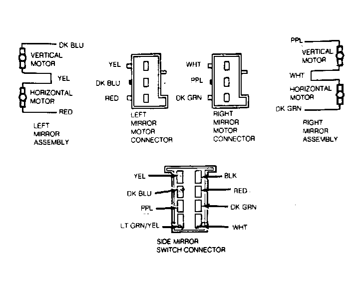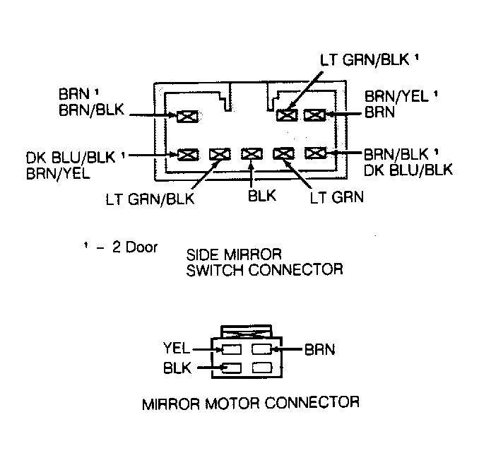 under REMOVAL & INSTALLATION. Using DVOM, check for continuity between specified wires. See appropriate SIDE MIRROR SWITCH TEST table. If switch fails any portion of test, replace switch.