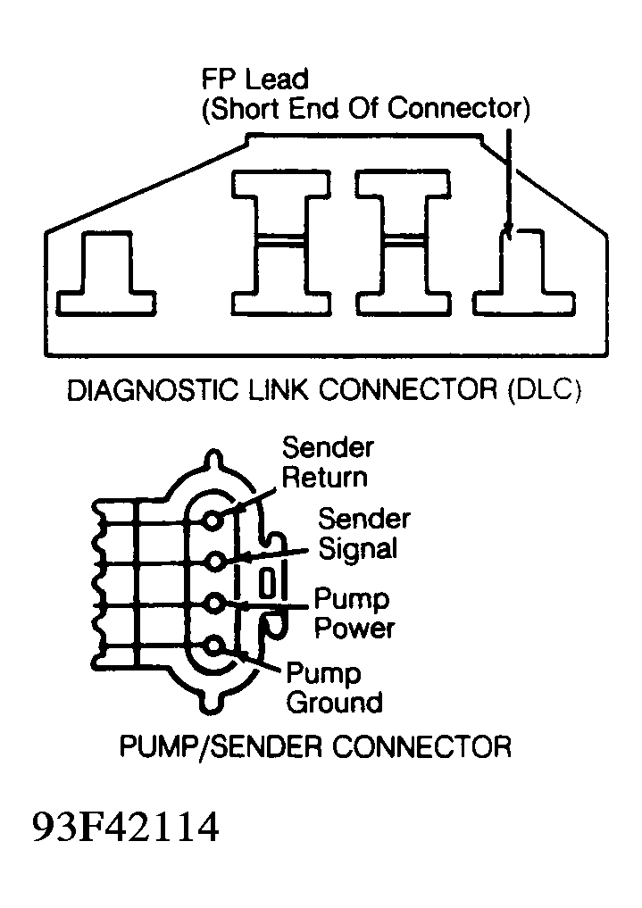 - If fuel pressure is zero, ensure battery is fully charged. Ensure connection is okay at pump/sending unit. Turn ignition off. Using a jumper lead, ground FP terminal at Diagnostic Link Connector (DLC). See Fig 1. Turn ignition on, leaving engine off. Listen for sound of fuel pump. If pump is running, go to next step. If pump is not running, go to step 7).