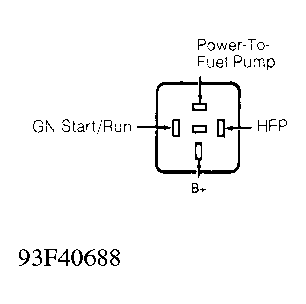 160) Lack Of Power/Hard Start; Check HFP Relay Operation Turn ignition off. Disconnect HFP relay. Relay is located in engine compartment fuse block. Measure voltage between negative battery post and B (+) terminal at HFP relay connector. See Figure . Turn ignition on. Measure voltage between IGN START/RUN terminal at HFP relay connector and negative battery post. If both voltage readings are more than 10.5 volts, go to step 161). If any reading is 10.5 volts or less, repair open in B (+) or IGN START/RUN circuit. Also, ensure all related fuses are good. After repair is completed, reconnect all components. Recheck system operation.