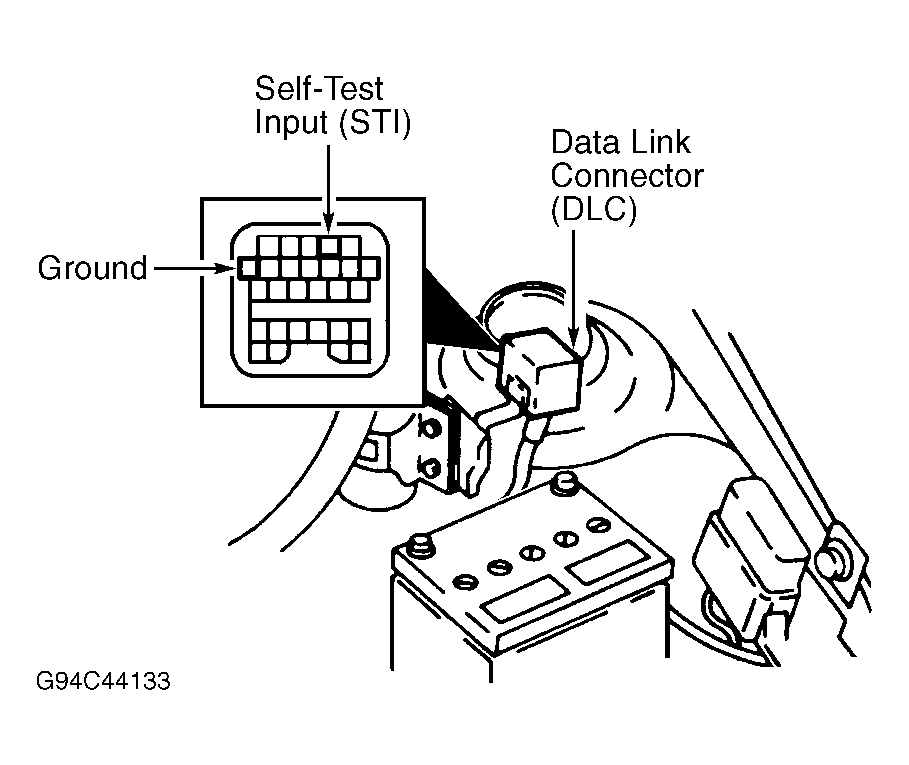 2. Connect jumper wire between Self-Test Input (STI) terminal and ground. See Fig 1 . If timing marks on crankshaft pulley and index pointer are not aligned, go to next step. If timing is as specified, no adjustment is required.
