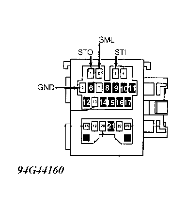1)  Ground STI connector. Connect VOM positive lead to SML terminal on self-test connector. Connect negative lead to ground. See Figure .