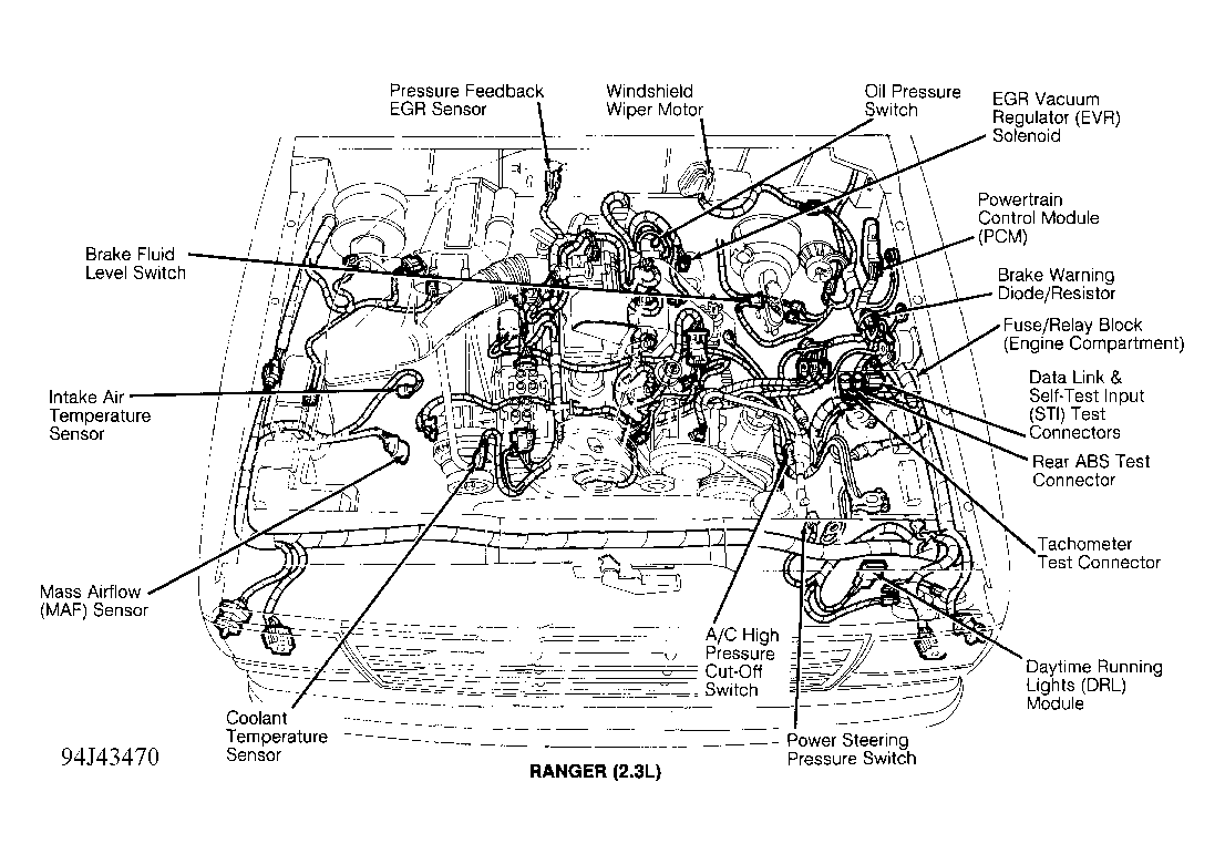 2.3L In left rear of engine bay. See Figure .