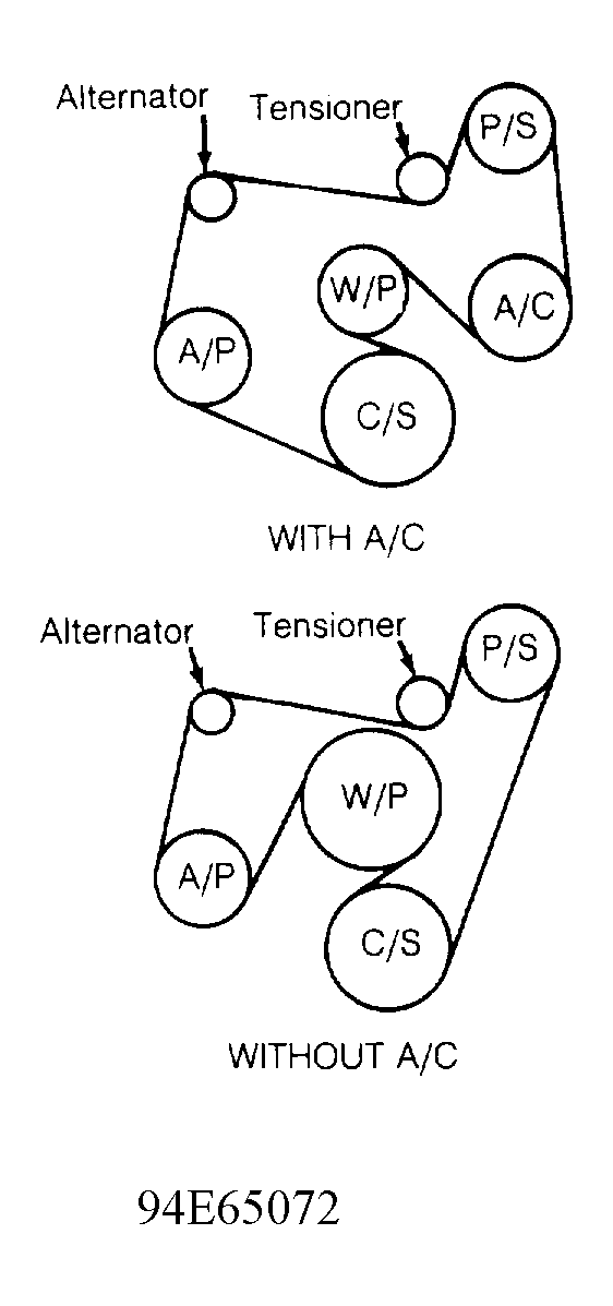 (1) When checking belt routing and tension, refer to appropriate illustration. See Fig 1 & 2.