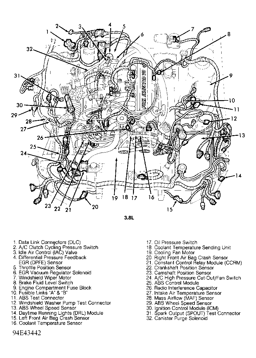 | 3.8L | On right inner fender panel, forward of strut tower. See Figure . | |
