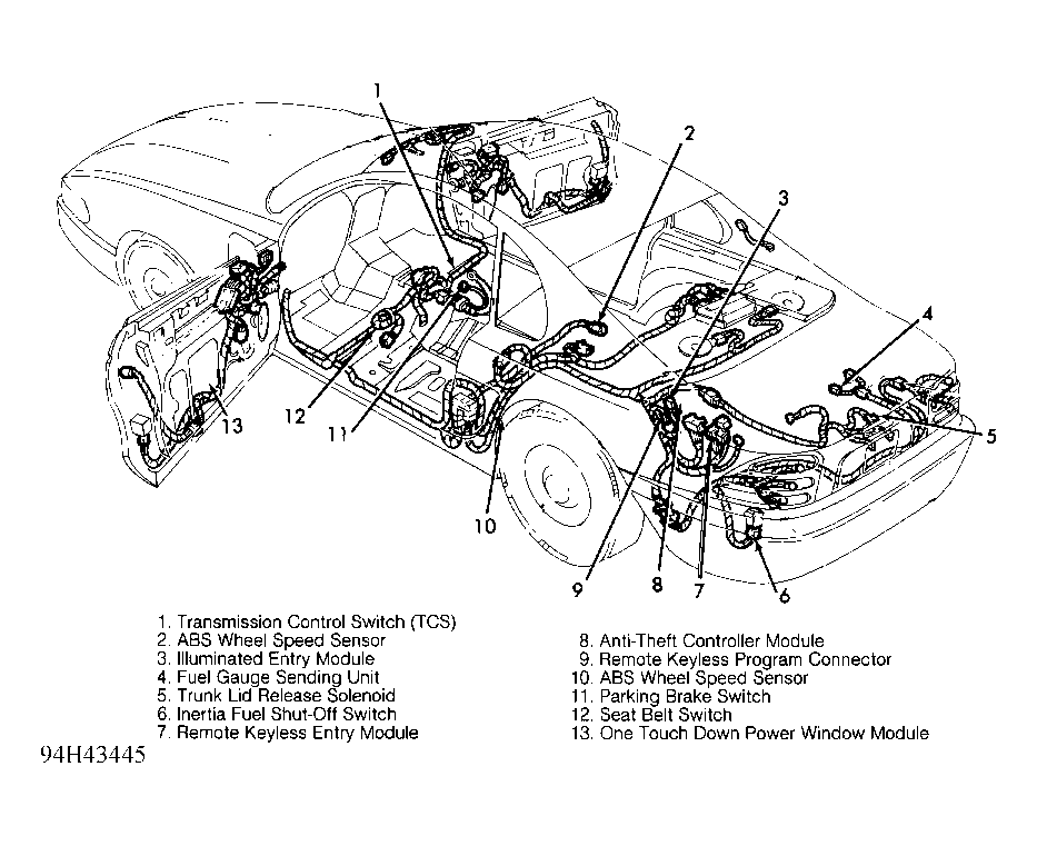 | Anti-Theft Controller Module | In left rear of trunk, behind trim panel. See Figure . | |